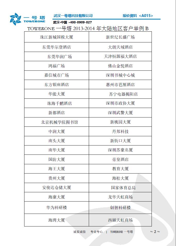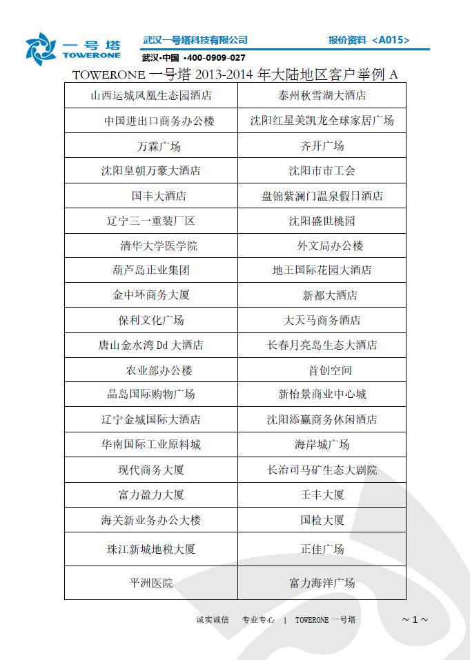 武汉一号塔科技有限公司 公司地址:武汉市雪佛兰大道113号 总部电话:18971288218 027- 88112808 400-6818-158